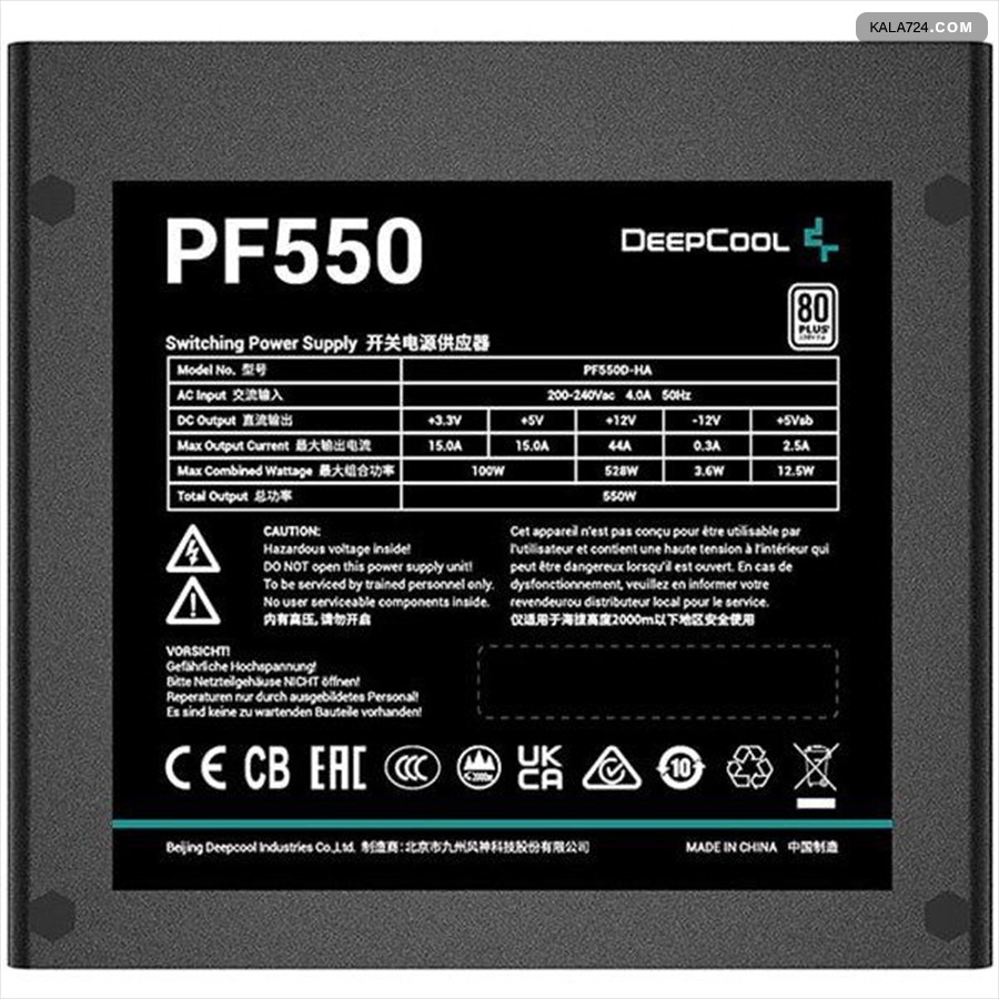 مشخصات پاور کامپیوتر دیپ کول مدل PF550 80 PLUS توان 550 وات