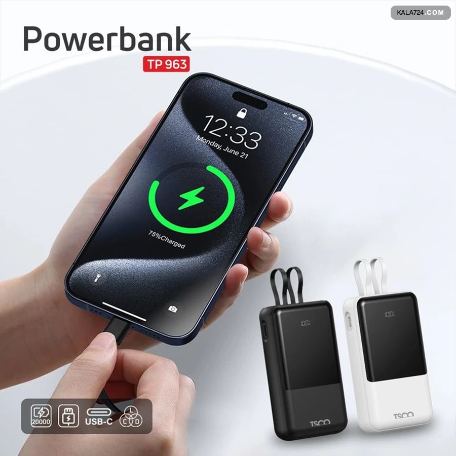 با خرید پاوربانک تسکو مدل TP 963 ظرفیت 20000 میلیآمپر ساعت از کالا 724، همیشه یک منبع انرژی قدرتمند و قابلاعتماد همراه خود خواهید داشت.