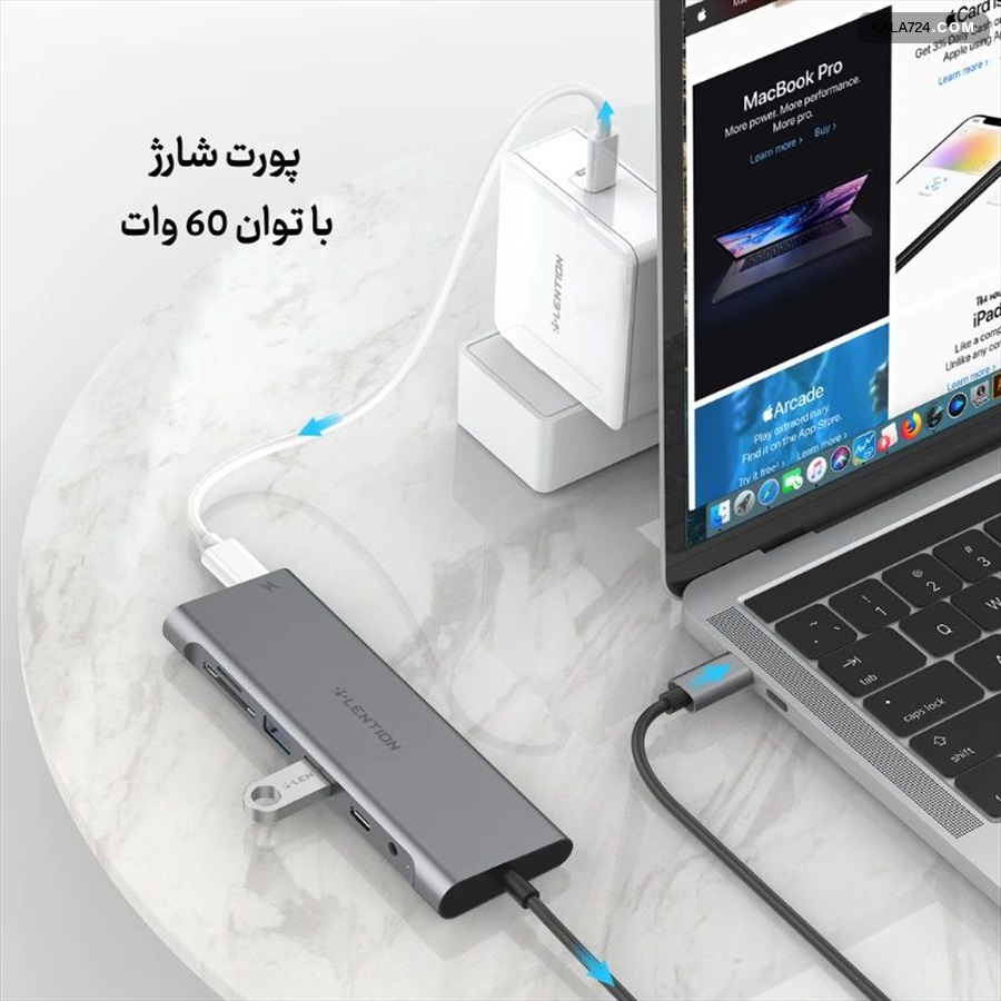 هاب USB-C لنشن ۸ پورت؛ حرفه‌ای و کاربردی
