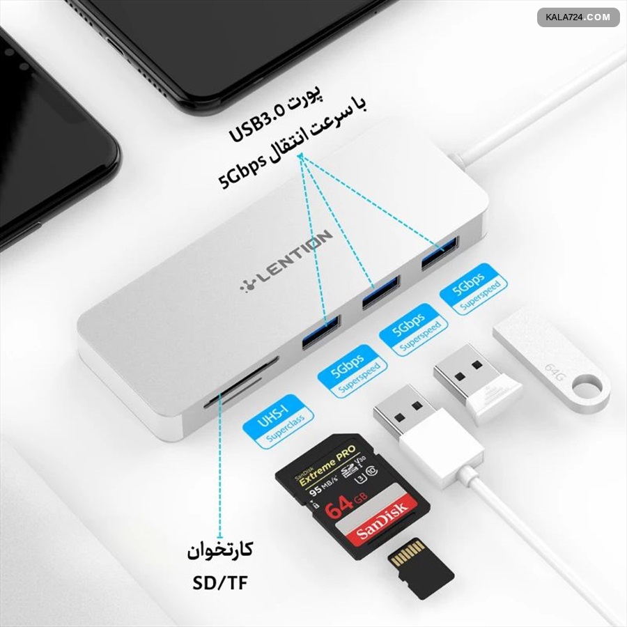 • تنوع کامل هاب، مبدل و لوازم جانبی USB