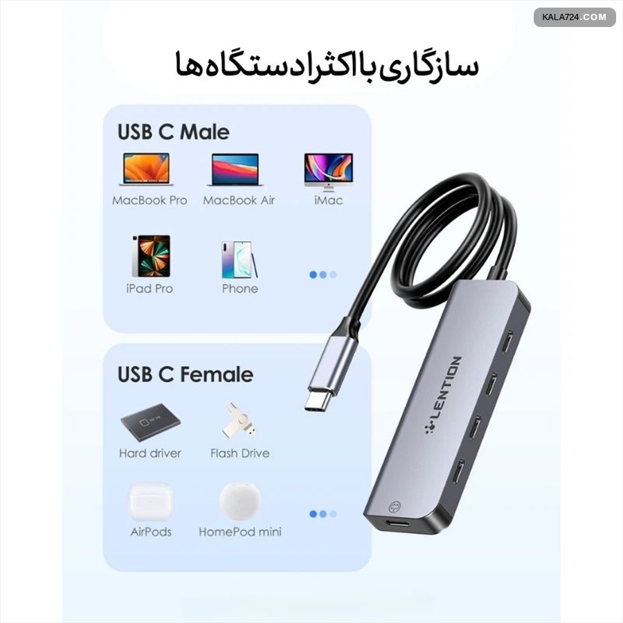 با خرید هاب لنشن مدل CE31 USB-C با ۵ پورت از کالا 724، اتصال سریع، مطمئن و هم‌زمان چند دستگاه جانبی به سیستم را تجربه خواهید کرد.
