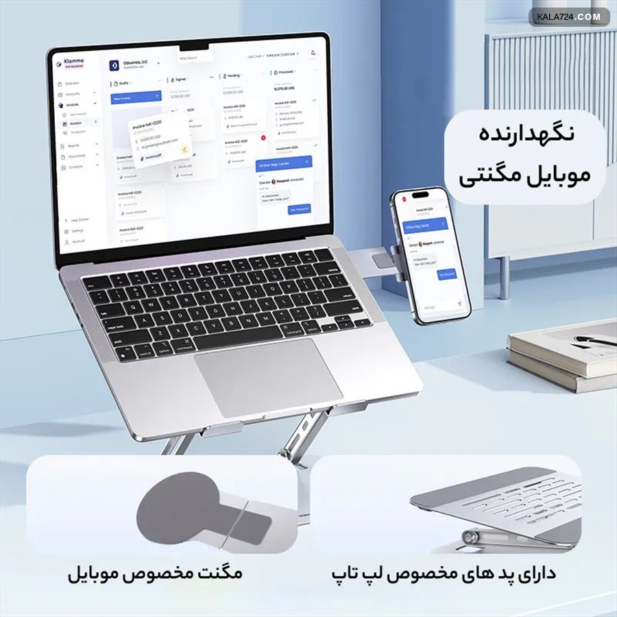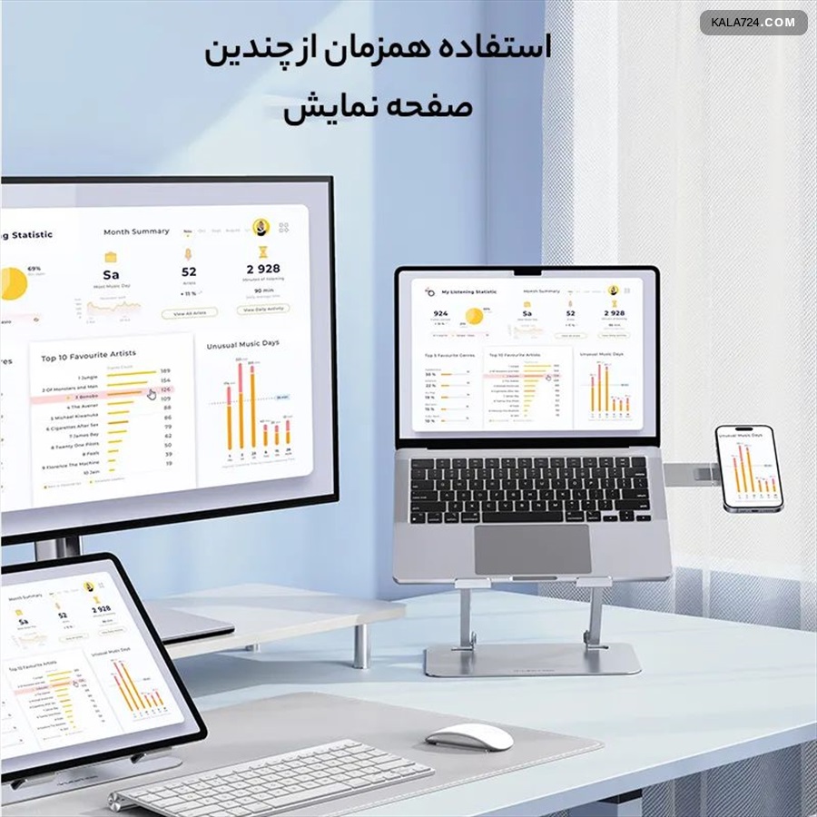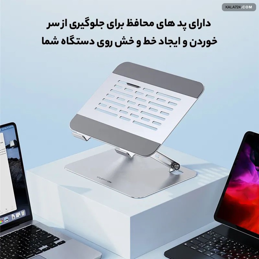 جنس آلومینیومی مقاوم، پایداری بالا و ظاهر مدرن آن باعث می‌شود این محصول مناسب دفتر کار، محیط خانگی و استفاده حرفه‌ای باشد. علاوه بر این، زیرپایه‌های ضد لغزش از حرکت پایه جلوگیری می‌کنند و امنیت دستگاه را تضمین می‌کنند.